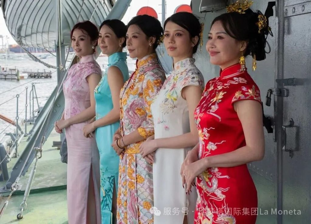 在本项目中,旗袍所承载的不仅是服饰形态,更是一种文化符号—其线条与结构体现东方审美的含蓄与张力,与舰艇所象征的历史记忆与守护意义形成跨越时空的对话。